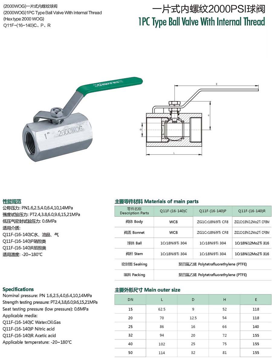 | 一片式内螺纹2000PSI球阀 |