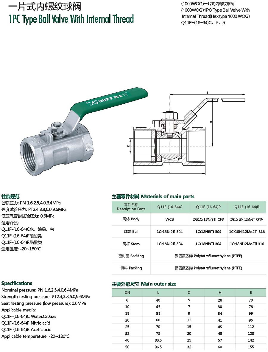 | 一片式内螺纹球阀 |