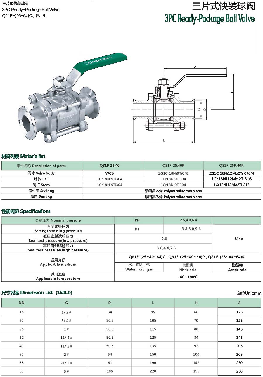 | 三片式快装球阀 |