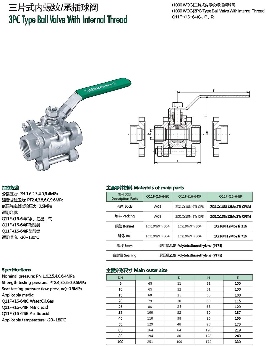 | 三片式内螺纹2000PSI球阀 |