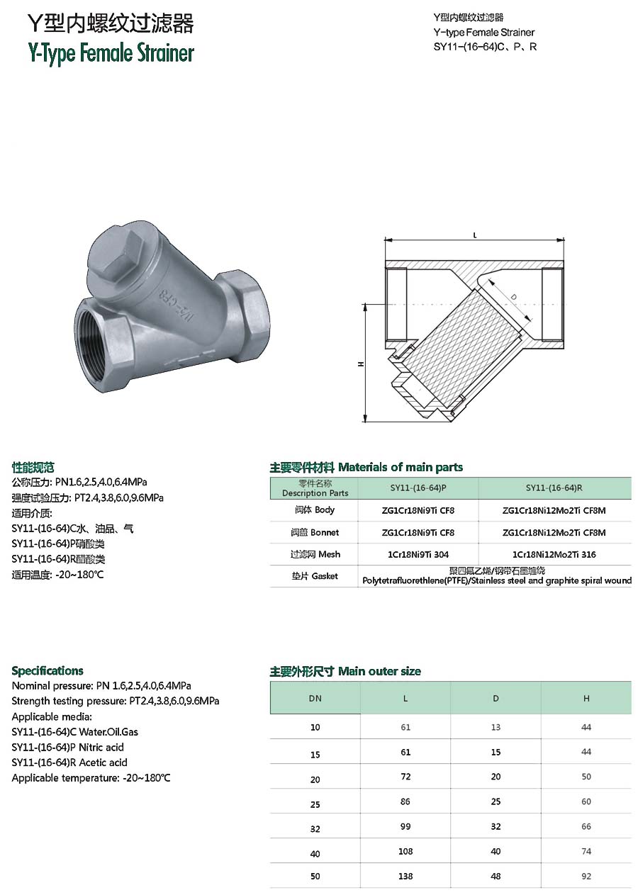 | Y型内螺纹过滤器 |