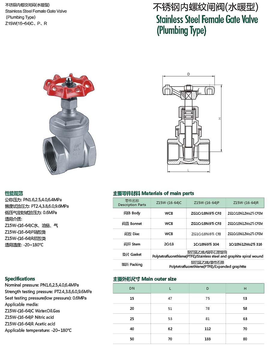 | 不锈钢内螺纹闸阀(水暖型) |