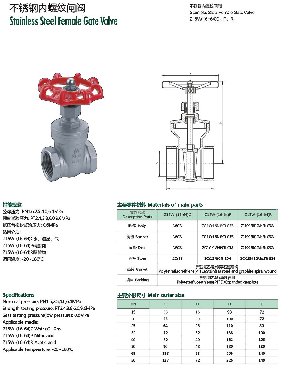 | 不锈钢内螺纹闸阀 |