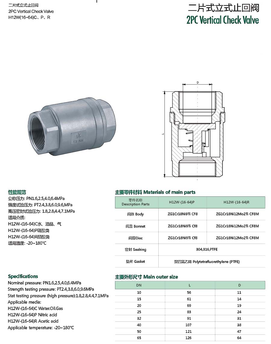 | 二片式立式止回阀 |