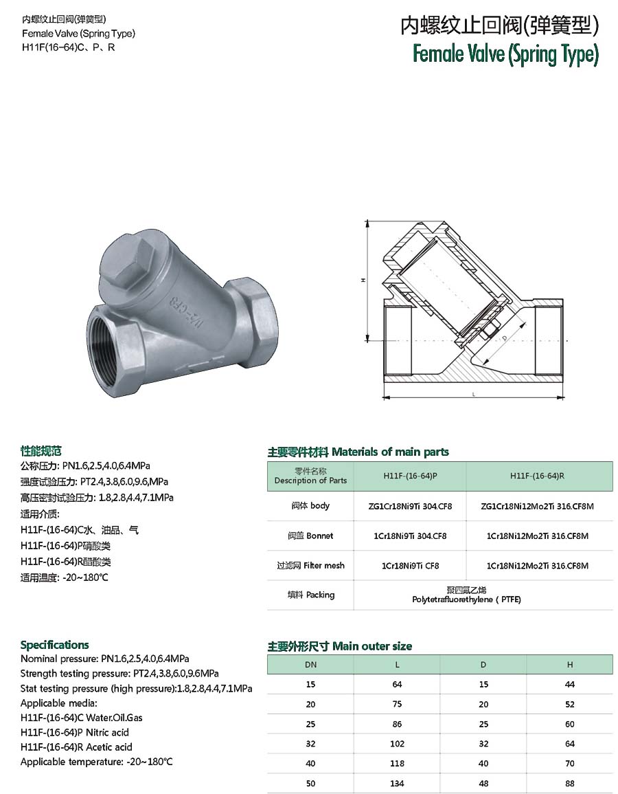 | 内螺纹止回阀(弹簧型) |