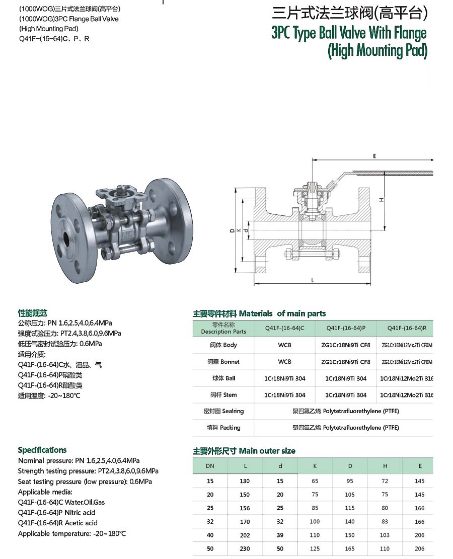 | 三片式法兰球阀(高平台) |