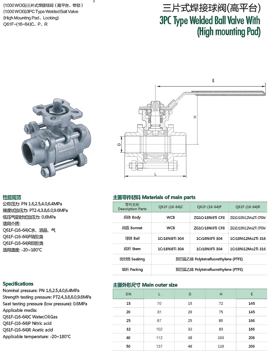 | 三片式焊接球阀(高平台) |