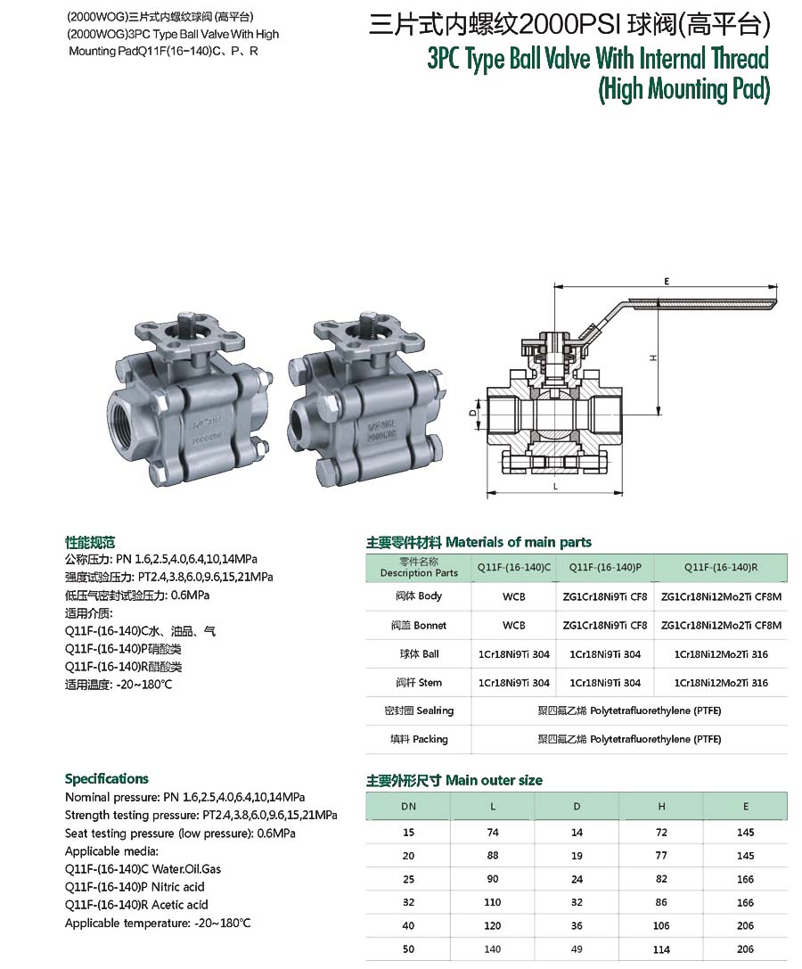 | 三片式内螺纹2000PSI球阀(高平台. |
