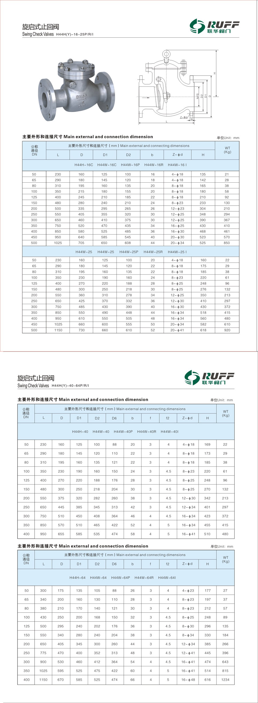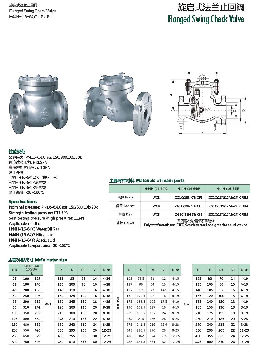 | 旋启式法兰止回阀H44 |